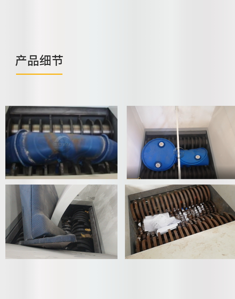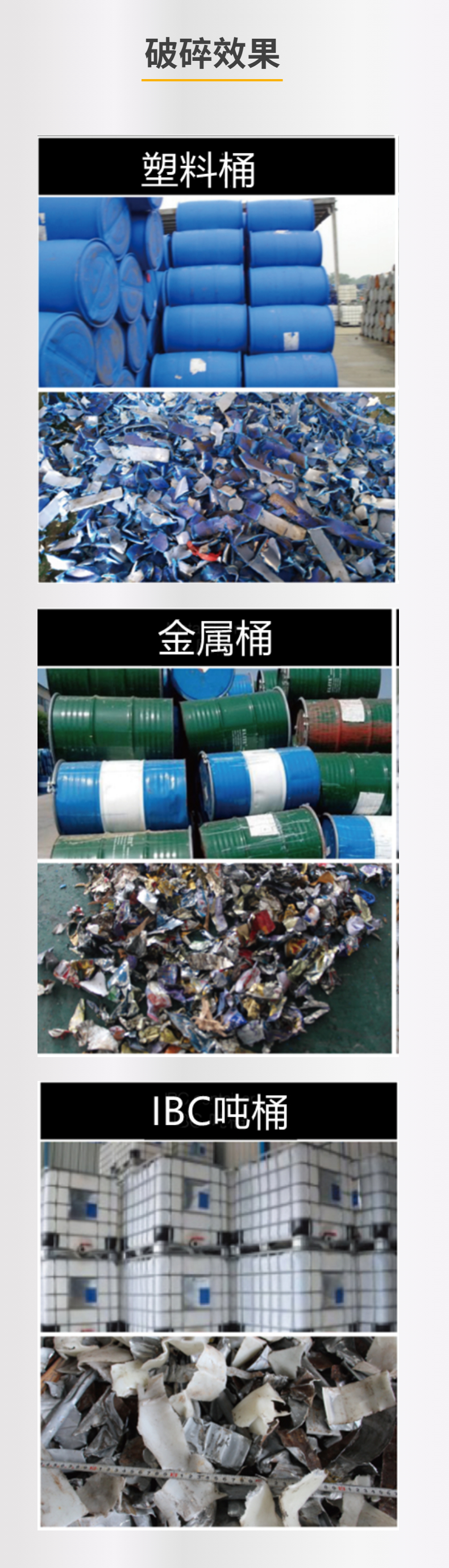 四軸破碎機(jī),破碎塑料桶和鐵桶