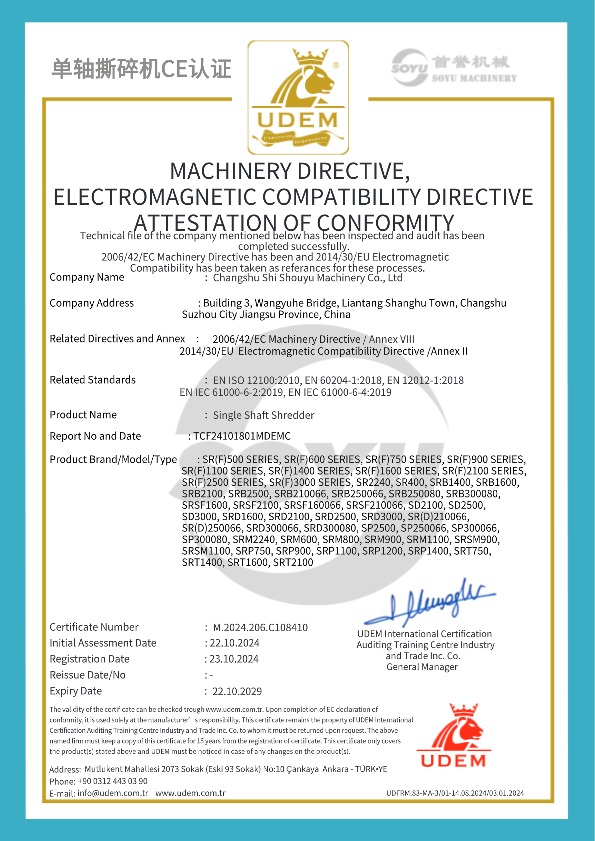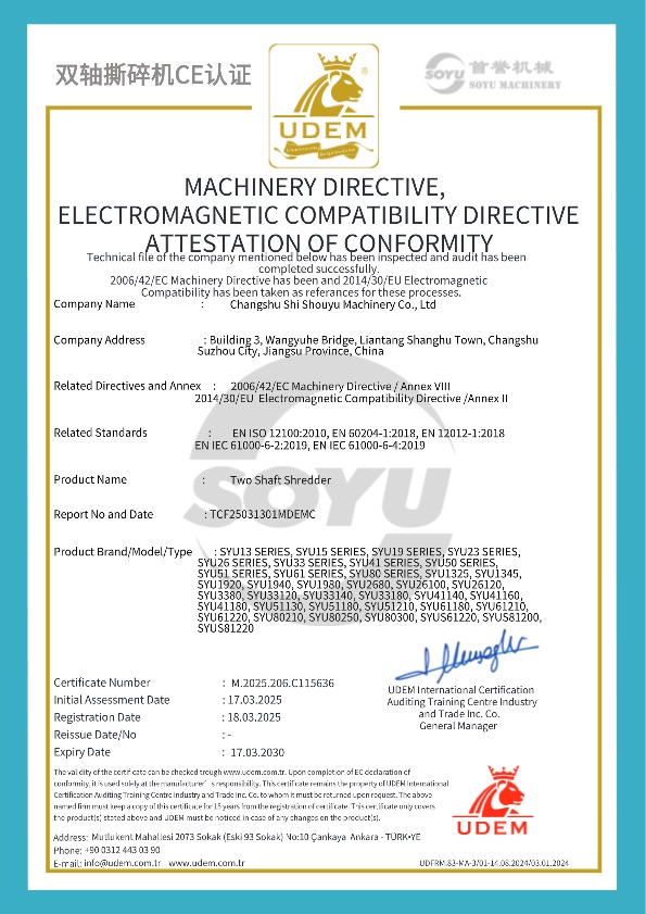 其推出的單軸撕碎機(jī)、雙軸撕碎機(jī)與四軸撕碎機(jī),依托歐洲成熟技術(shù)內(nèi)核與嚴(yán)苛品質(zhì)管控,順利通過CE認(rèn)證,完全接軌國際安全與質(zhì)量標(biāo)準(zhǔn),為全球客戶提供合規(guī)可靠的破碎解決方案。