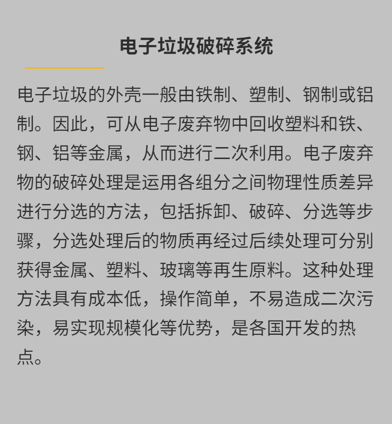 廢舊電池中的鎳、鈷、錳、鋁等金屬材料通過回收工藝,可實現(xiàn)電池材料循環(huán)使用。首譽(yù)機(jī)械推出的廢舊電池專用破碎系統(tǒng),在國內(nèi)外擁有多處使用案例,具有高效、安全、耐用、智能化等特點(diǎn),得到用戶的一致肯定
